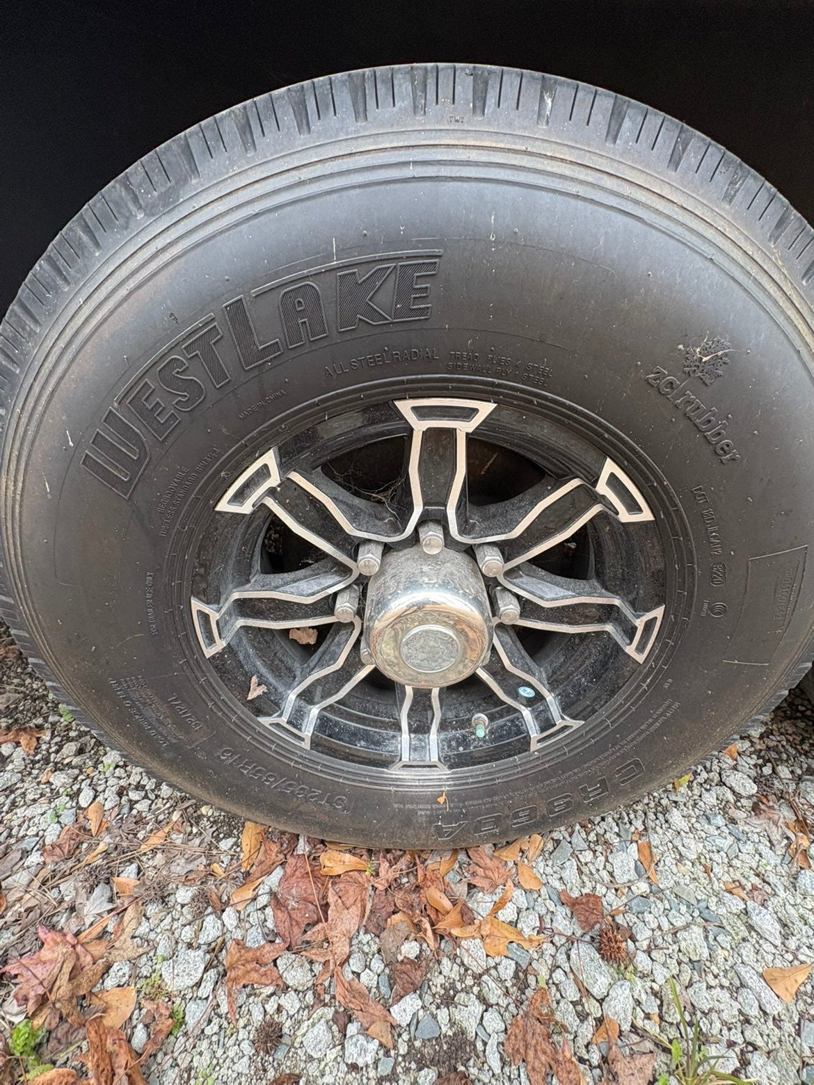 The trailer measures 29.6 feet overall with a 24-foot kitchen space, providing plenty of room for cooking and prep. It operates on both gas and electricity and is powered by an Onan 12 kW generator, 50-amp shore power connection, and two exterior 100 lb propane tanks secured in a cabinet.
